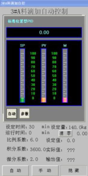 5. 手動(dòng)方式:a.出料:反應(yīng)開始,設(shè)定好所需加料重量,加料重量=料罐內(nèi)料重